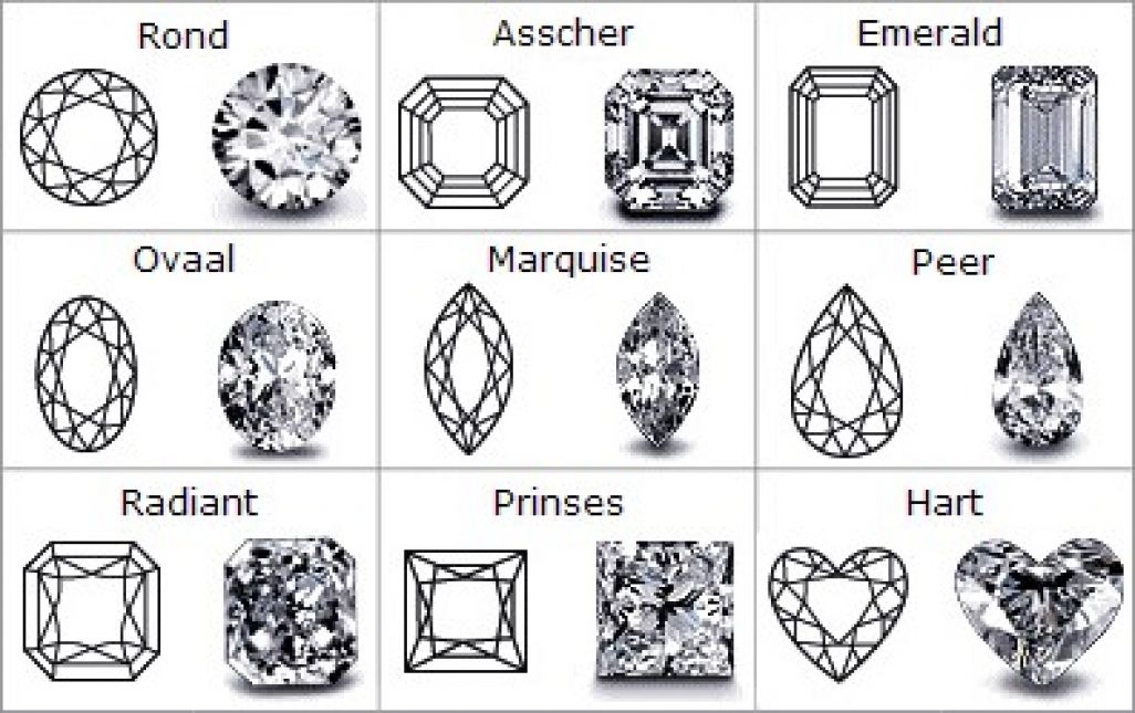 Er zijn verschillende slijpvormen van diamanten, de meest populaire vorm is de briljant, hieronder een beschrijving van de verschillende slijpvormen.